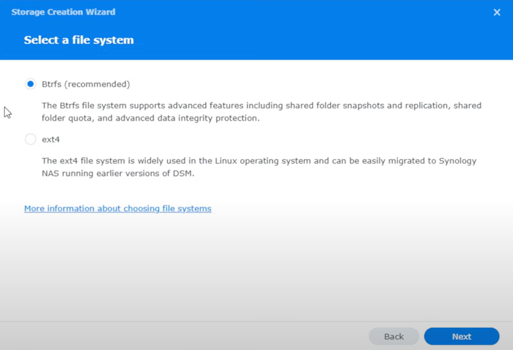 - Choose RAID Type: Select a RAID type (e.g., RAID 5, RAID 10) to protect your storage pool, considering data protection and features.