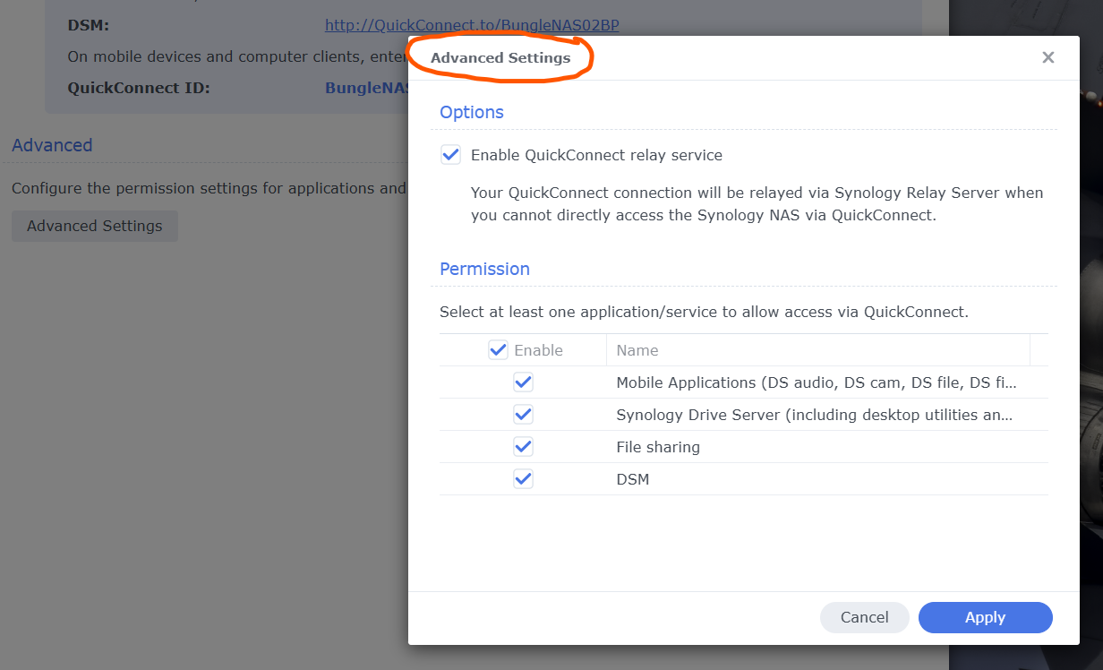 Go to Advance Settings and select the apps you want to have access to via QuickConnect.