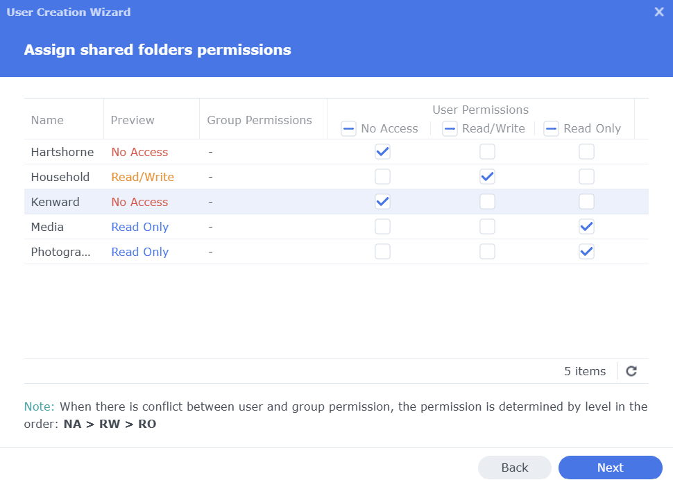 - Users – Configure users and access to folders (do not use your admin account)