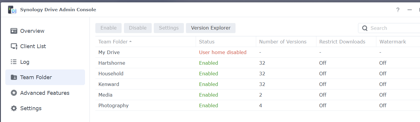 You will see above I keep 32 version of all files on the Hartshorne, Kenward, and Household shared folders.