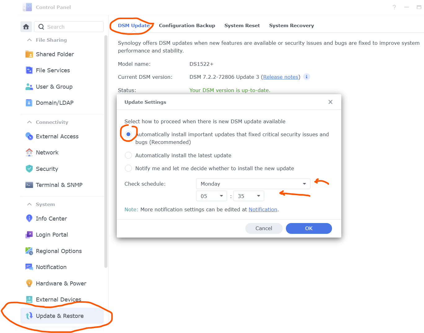 Set you NAS to auto update at a time you won’t be using it.